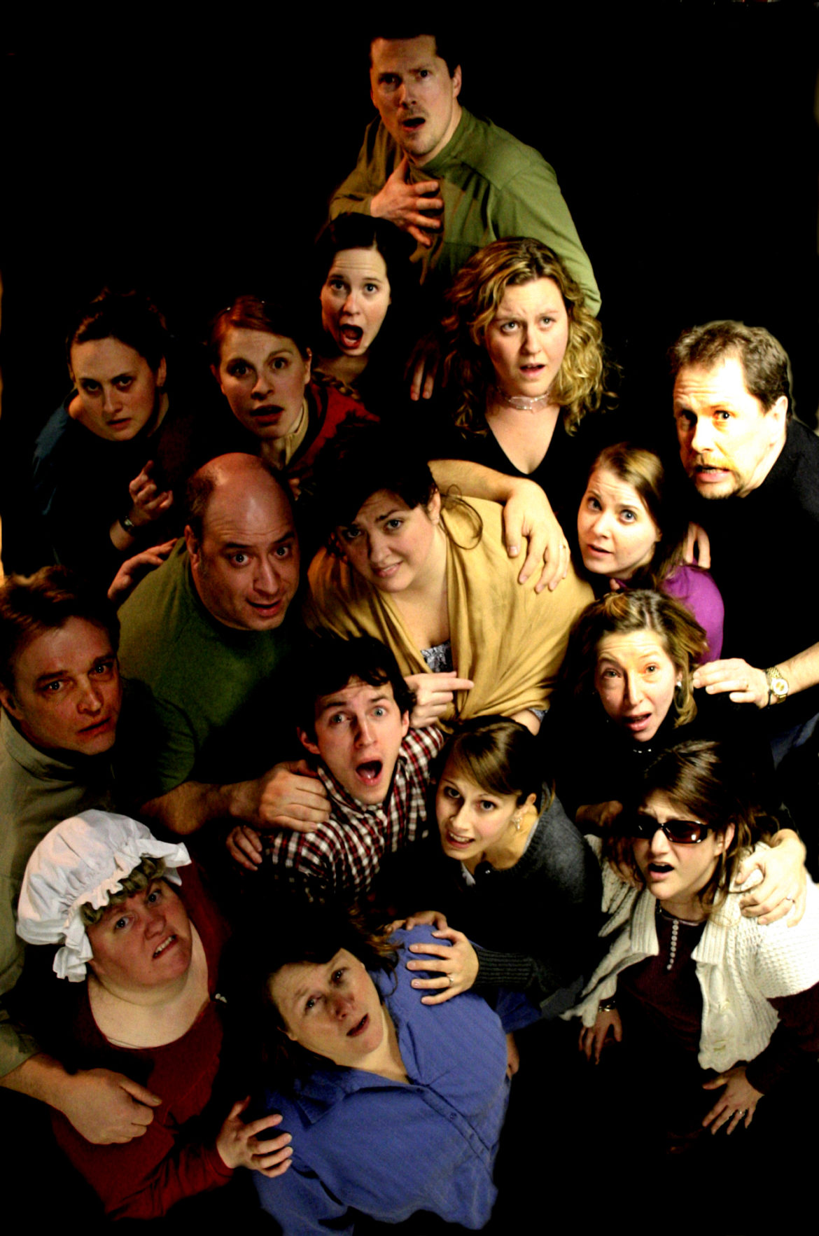 (Back row) Russ White,(Second from back row) Denise Webb, Allison Greet, Catherine Brown, Lindsay Franklin, Allen Puy, (Third row from back) Scott Yannick, Bonnie Schumann, Kelly Nelson, (Fourth from back row) Carey Rumpf, James Alexander, Christine Kozsuch, (Fifth from back row) Abigail Cain, Jen Kaczmarski, (Front Row) Katie Farnum, Karen Lammey: the cast of INTO THE WOODS at Barley Sheaf Players through April 2.