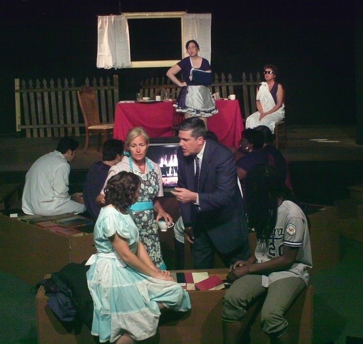 The above synopsis does little justice to the story…it’s absurdist in nature, with many “breaks” where the actors drop their character to speak directly to the audience, explaining things or changing the script on the fly. In Act 3, it is revealed that some of the “regular” cast members have food poisoning and the Stage Manager has enlisted some non-actors to fill in, even conducting a mini-rehearsal in the midst of the performance. While this makes the play somewhat difficult to follow at times, it gives the audience plenty of opportunities for laughs.