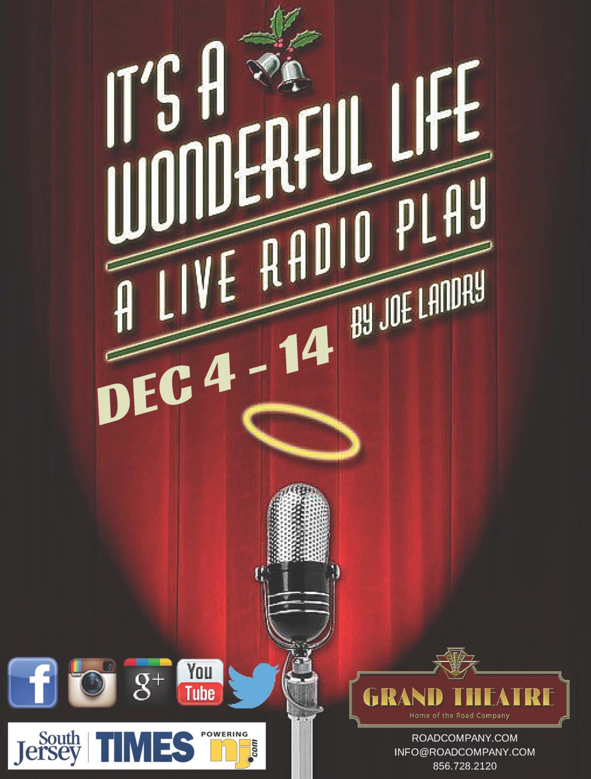WILLIAMSTOWN, NJ – Tradition is king during the holiday season. We dust off the knick-knacks and the memories, and we collect new ones to treasure. This year, The Road Company is proud to present a featured favorite with an exciting new twist: It’s A Wonderful Life: A Live Radio Play, running December 4 – December 14, 2014 (Thursdays at 7pm; Friday and Saturdays at 8pm; Sundays at 2pm) and tickets range from $22-$25 with discounts for seniors, students and groups. Performances are at the Grand Theatre, located at 405 S. Main Street, Williamstown, NJ. Tickets are available at www.roadcompany.com or 856-728-2120. Please see the Fact Sheet below for more details.