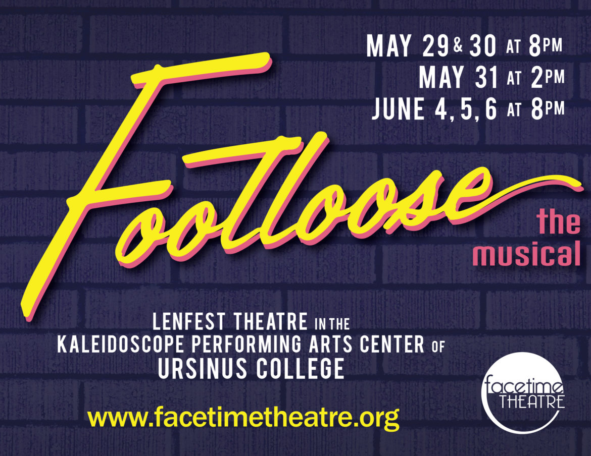 So cut loose and come see Facetime’s FOOTLOOSE at the Lenfest Theatre in the Kaleidoscope Performing Arts Center at Ursinus College, 601 East Main Street, Collegeville, PA 19426.