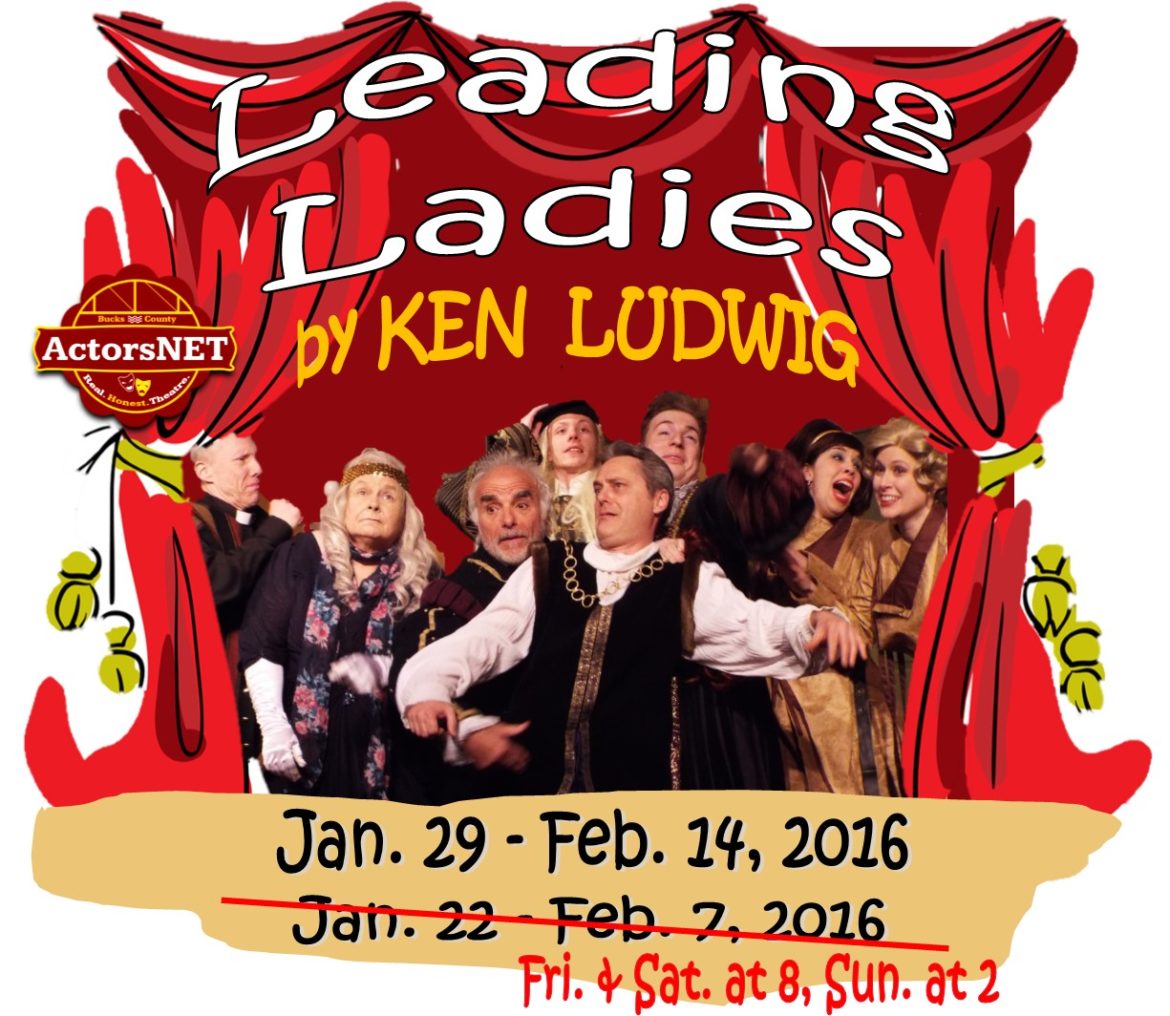 Having had our opening weekend stolen by the blizzard, ActorsNET is extending the run of LEADING LADIES until February 14….. So don’t miss this very very funny play with its very talented cast under the guidance of a zany director (Joe Doyle). Fridays and Saturdays at 8, Sundays at 2, at The Heritage Center Theatre, 635 N. Delmorr Ave., Morrisville, PA, 215-295-3694.