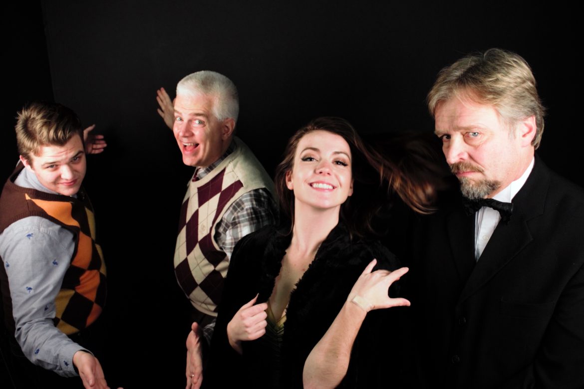 l to r: Alex Harding as Gangster #1, Doug Pratt as Gangster #2, Marybeth Williamson as Kitty, and Carey Rumpf as Feldzieg