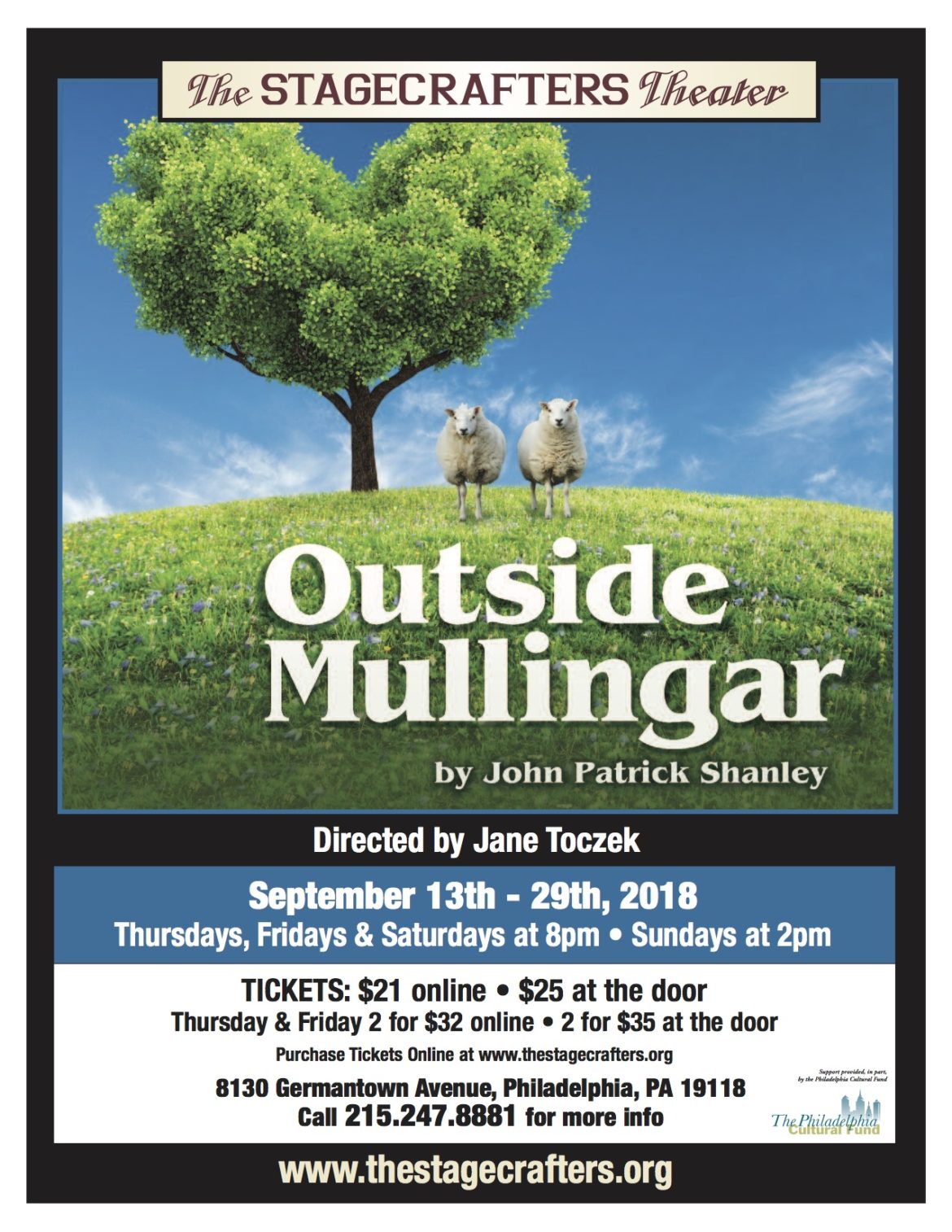 Stagecrafters begins the 2018-2019 season with John Patrick Shanley’s Outside Mullingar opening on September 13th. The play set in the midlands of Ireland is a romantic comedy-drama involving two middle-aged farmers, Rosemary and Anthony, who live on adjoining farms. Rosemary has been romantically interested in Anthony all her life but he is unaware of her feelings.
