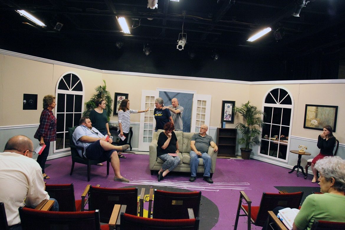 Mounting a community theatre show isn’t the easiest thing in the world. PLAY ON!, Forge Theatre, Phoenixville, is Rick Abbot’s “love letter to community theatre.” It shows the audience what happens behind the scenes, with amateur actors, an undecided playwright, a problematic set, vanishing sound cues, and tech staff members who will do their jobs despite the chaos on stage. This is the journey that a group of present day community actors takes while trying to produce a mediocre mystery entitled ‘Murder Most Foul.’ The dress rehearsal is disorganized at best, but it pales in comparison to the opening night, when the director wishes she had spent the night in a bar–in another town.