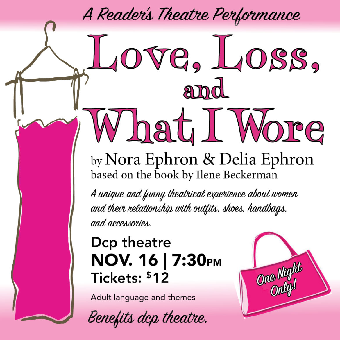LOVE, LOSS AND WHAT I WORE will be featured as a DCP Theatre Outlet performance for one night only: Saturday, November 16, 2019 with a curtain time of 7:30pm. Tickets are $12, $10 if purchased online at www.dcptheatre.com.